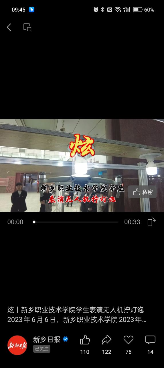 新乡日报 | 炫!新乡职业技术学院学生表演无人机拧灯泡