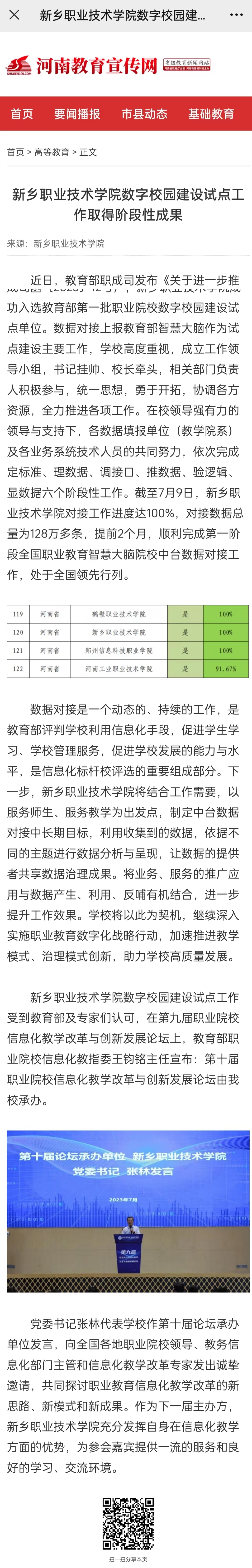 【河南教育宣传网】新乡职业技术学院数字校园建设试点工作取得阶段性成果