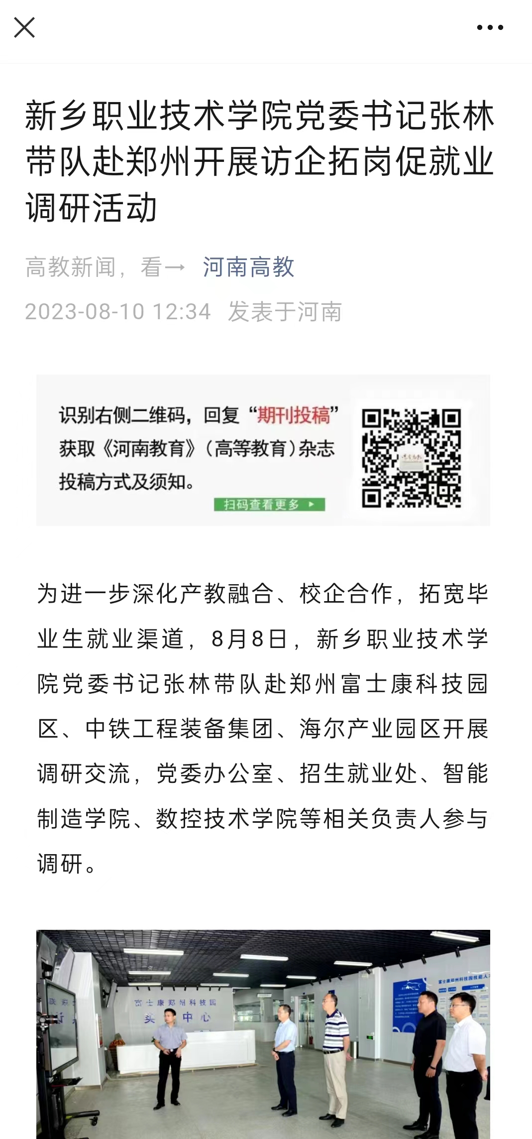 【河南高教】新乡职业技术学院党委书记张林带队赴郑州开展访企拓岗促就业调研活动