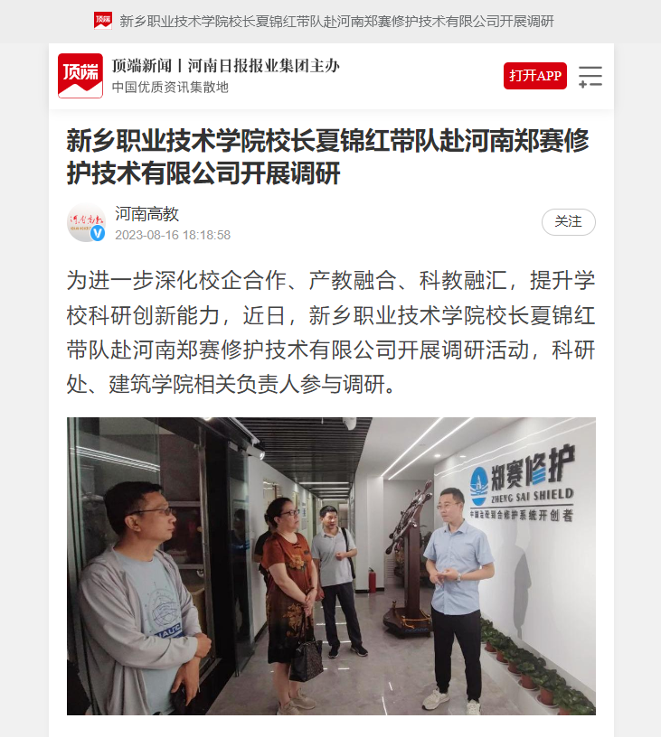 【顶端新闻】新乡职业技术学院校长夏锦红带队赴河南郑赛修护技术有限公司开展调研