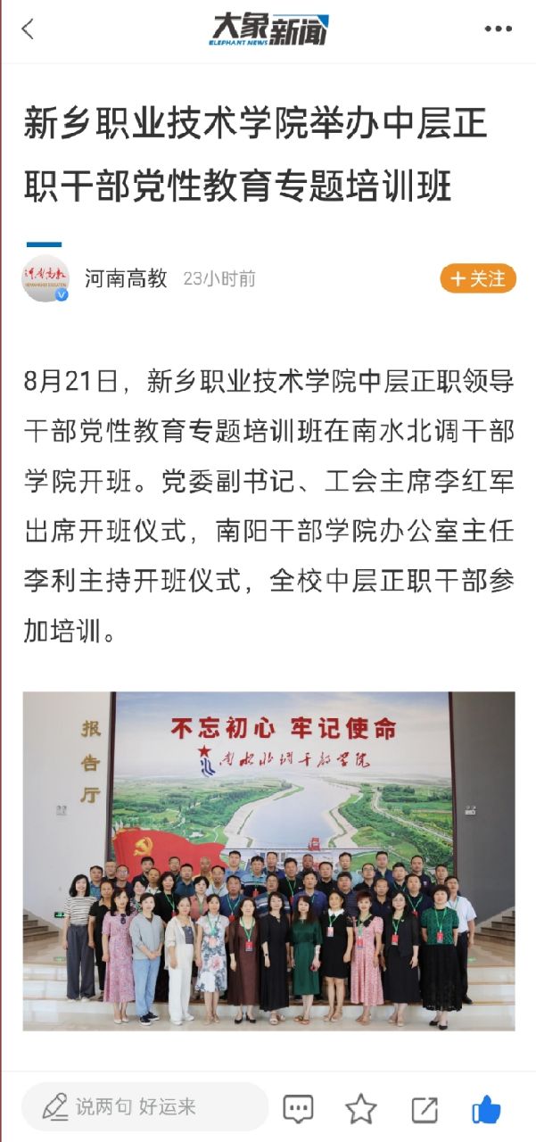 【大象新闻】新乡职业技术学院举办中层正职干部党性教育专题培训班