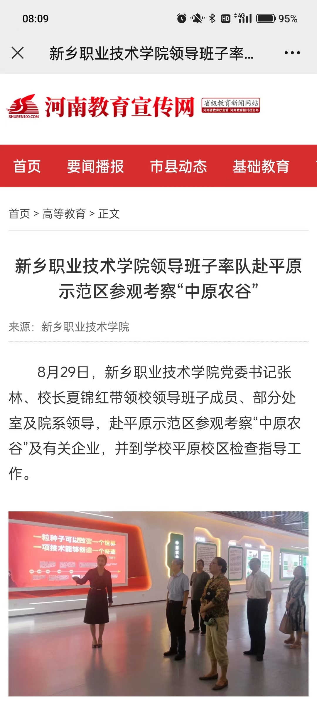 【河南教育宣传网】新乡职业技术学院领导班子率队赴平原示范区参观考察“中原农谷”