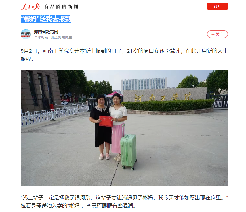 【人民日报】“彬妈”送我去报到