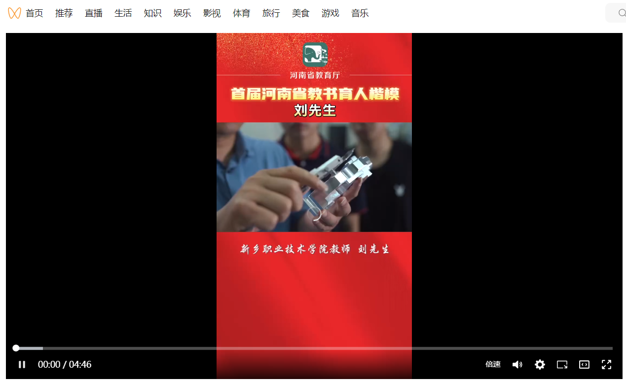 【河南省教育厅视频号】首届河南省教书育人楷模——新乡职业技术学院教师刘先生