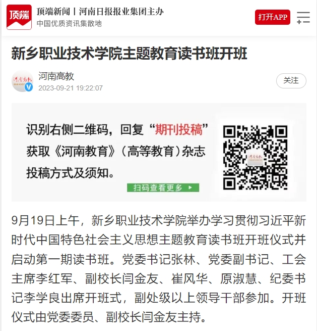 【顶端新闻】新乡职业技术学院主题教育读书班开班