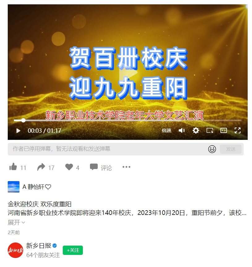 【新乡日报】金秋迎校庆 欢乐度重阳