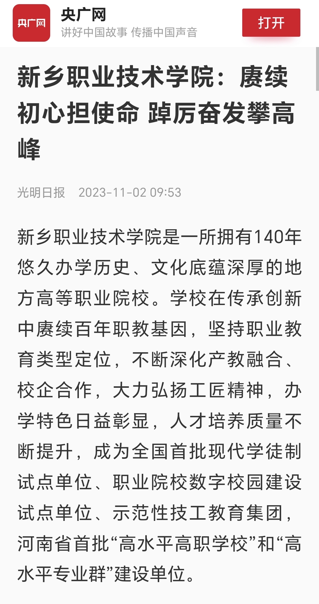 【光明日报】新乡职业技术学院:赓续初心担使命 踔厉奋发攀高峰