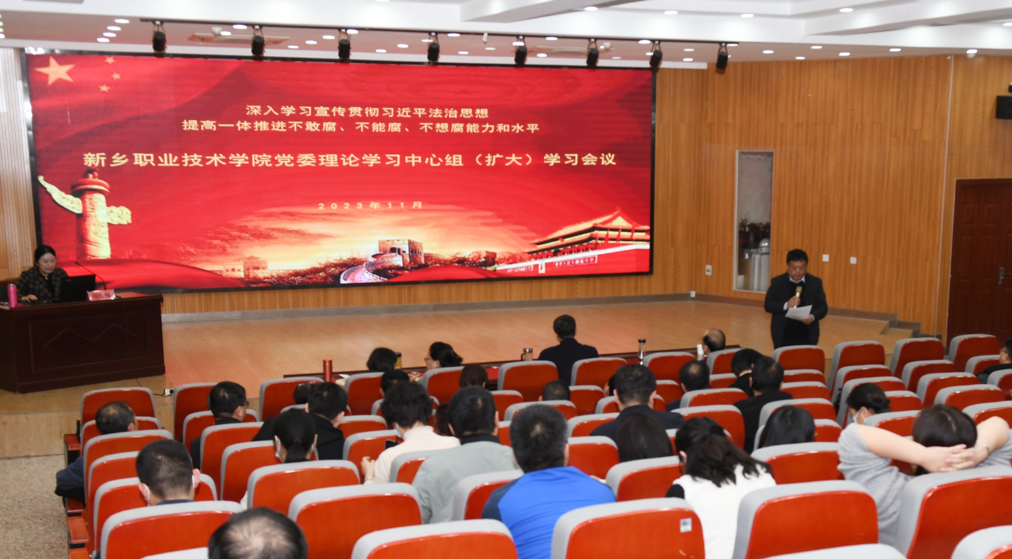 为全面贯彻落实党的二十大精神,深入开展学习贯彻习近平新时代中国特色社会主义思想主题教育,把学习好、研究好、宣传好、阐释好习近平法治思想作为重大政治责任,扎实开展“双百”活动,11月23日下午,我校在实验楼一楼阶梯教室召开党委理论学习中心组(扩大)学习会议,邀请省纪委监委驻省教育厅纪检监察组三级调研员、四级高级监察官程红梅同志来我校作专题讲座。校党委书记张林,校长夏锦红,副校长闫金友、原淑慧,纪委书记李学良,以及中层以上干部参加会议。