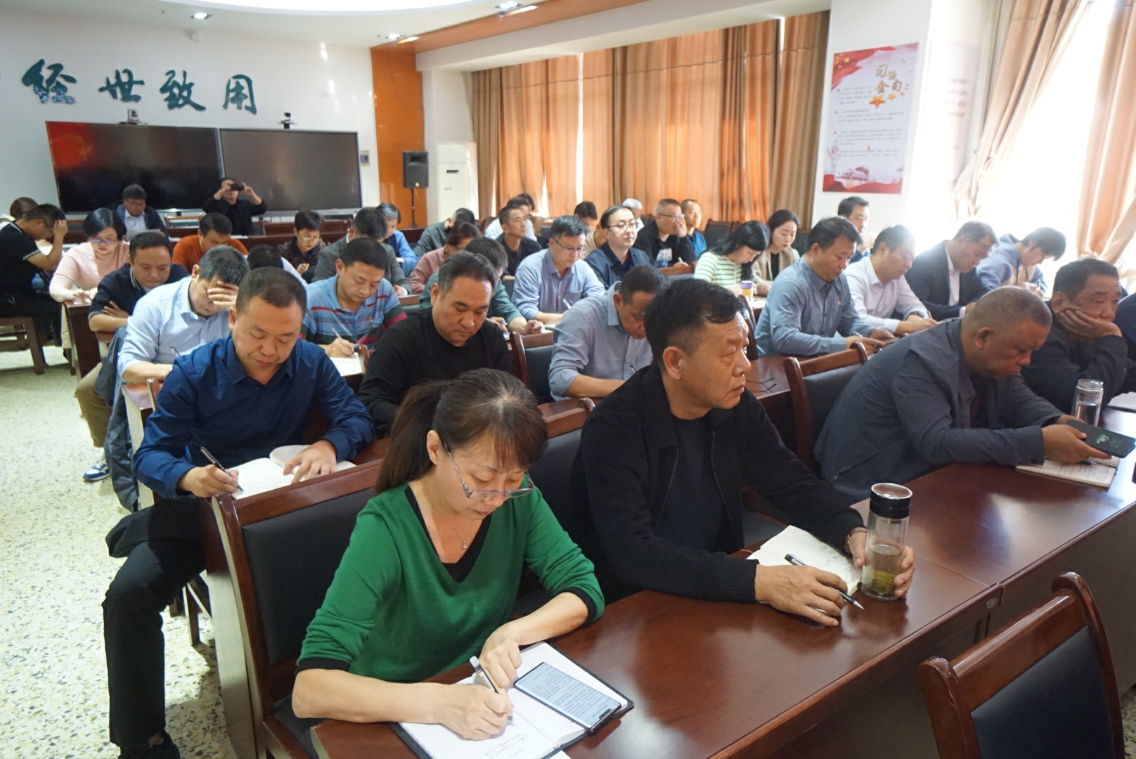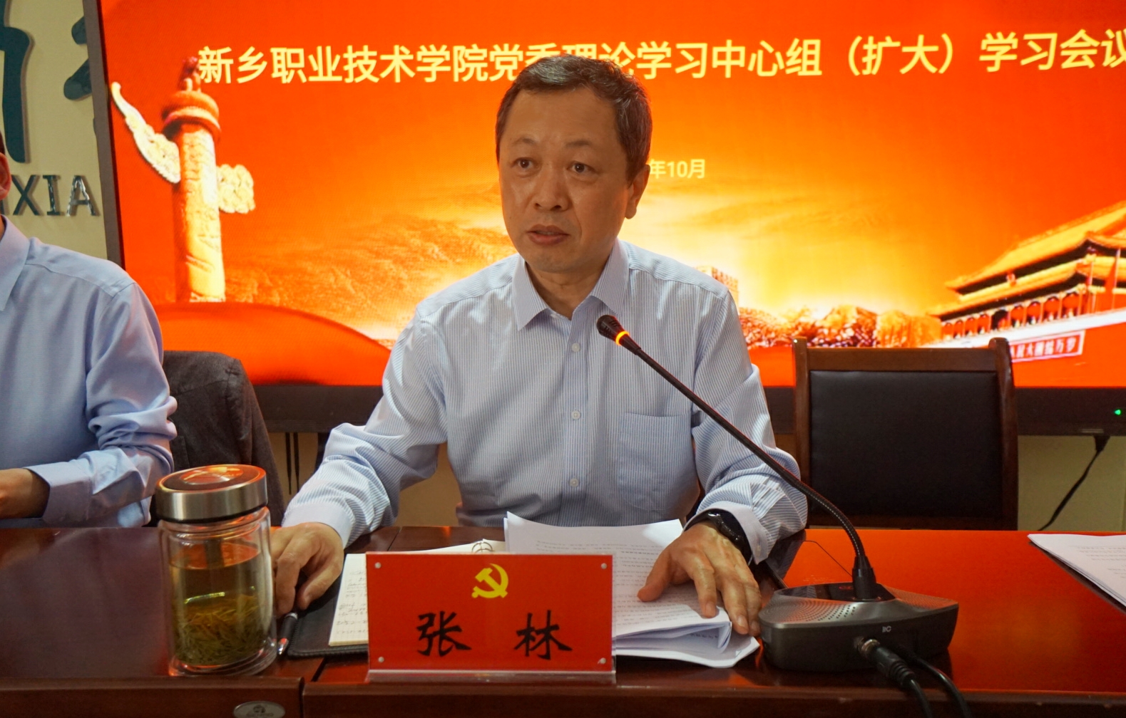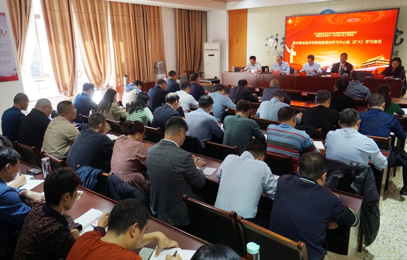 10月24日,我校在综合楼第六会议室召开第七次党委理论学习中心组(扩大)学习会议,党委班子成员、相关职能处室负责同志、各二级学院党总支书记及院长共计50余人参加了此次学习,会议由党委书记张林主持。